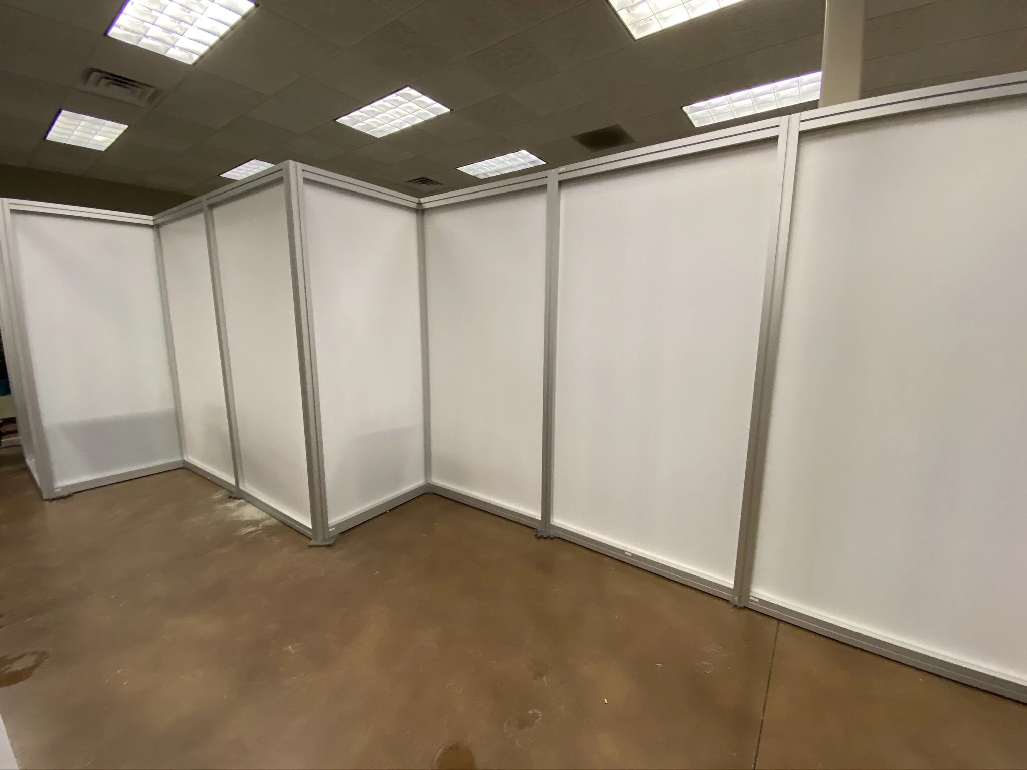 For this project we had 2 days to separate our office into two spaces to accommodate our new neighbors. To finish this project in time we needed to be creative and efficient. We built a few walls for the main office area and used structural aluminum filled with corrugated plastic sheets to build a translucent wall in between the two office spaces.